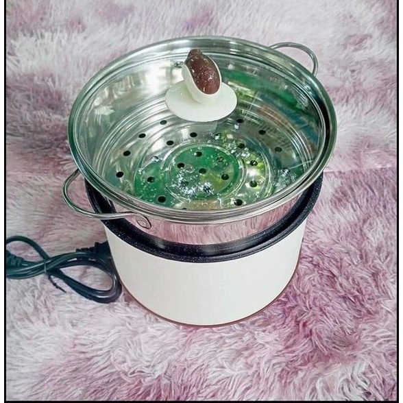 Nồi Đa Năng Mini Có Xửng Hấp Kim Loại - Ca Nấu Lẩu, Nấu Mì, Luộc ,Hấp