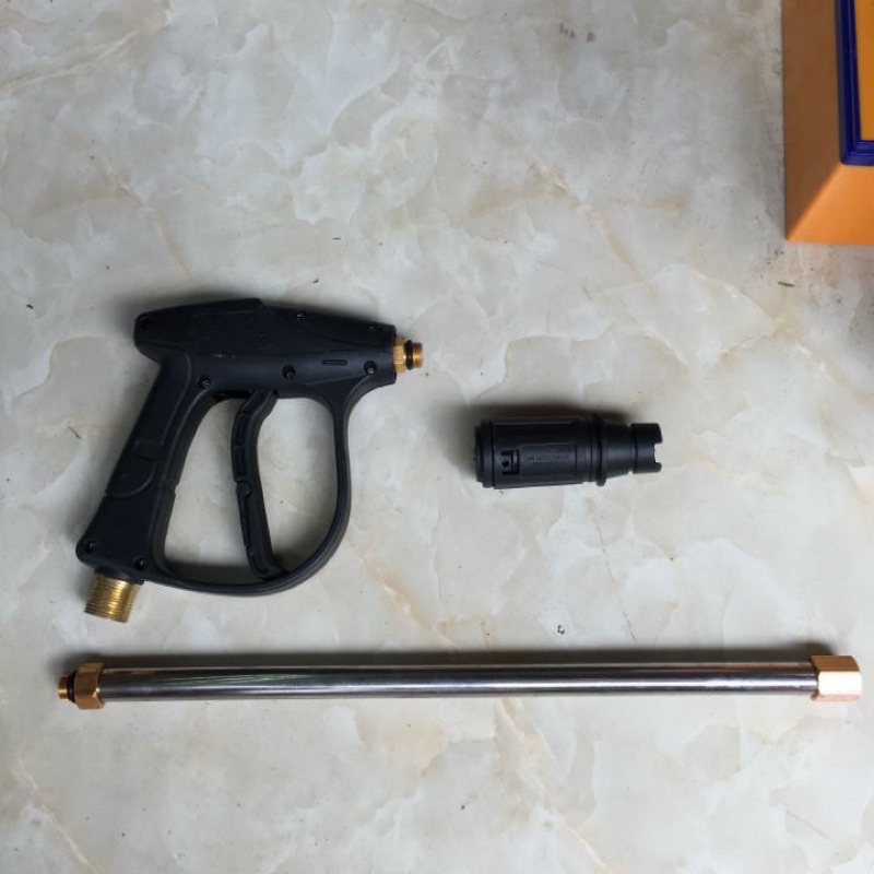 - Ống nối dài có chiều dài giúp bạn dễ dàng luôn sâu vào các vị trí khó với tới & tạo 1 khoảng cách nhất định giữa người sử dụng máy bơm xịt rửa xe với vật cần rửa để tránh bắn nước & đảm bảo an toàn hơn.