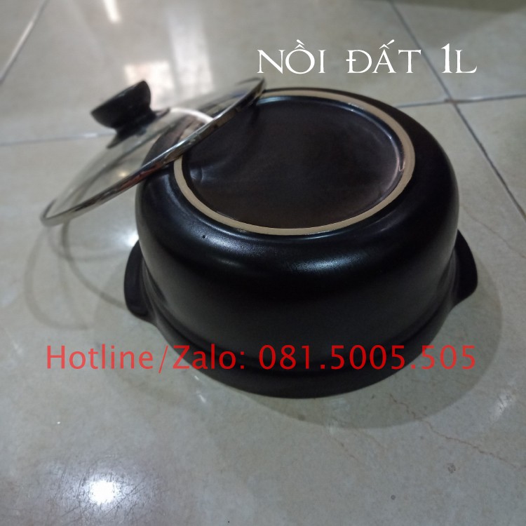 Nồi đất kho tộ, nấu mỳ cay 1 lít nồi đất 8 inch có đế đỡ bằng nhựa chịu nhiệt