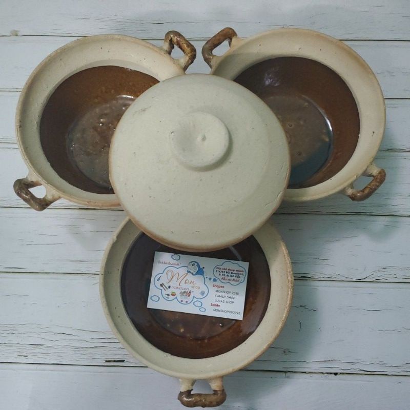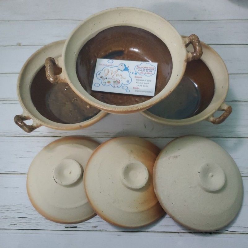 Nồi kho nhỏ (đường kính 16,17cm tùy mỗi đợt lò làm ra)Trước khi dùng nên sử lý trước khi sử dụng nếu không sẽ rất dễ nứt và xài không bền.