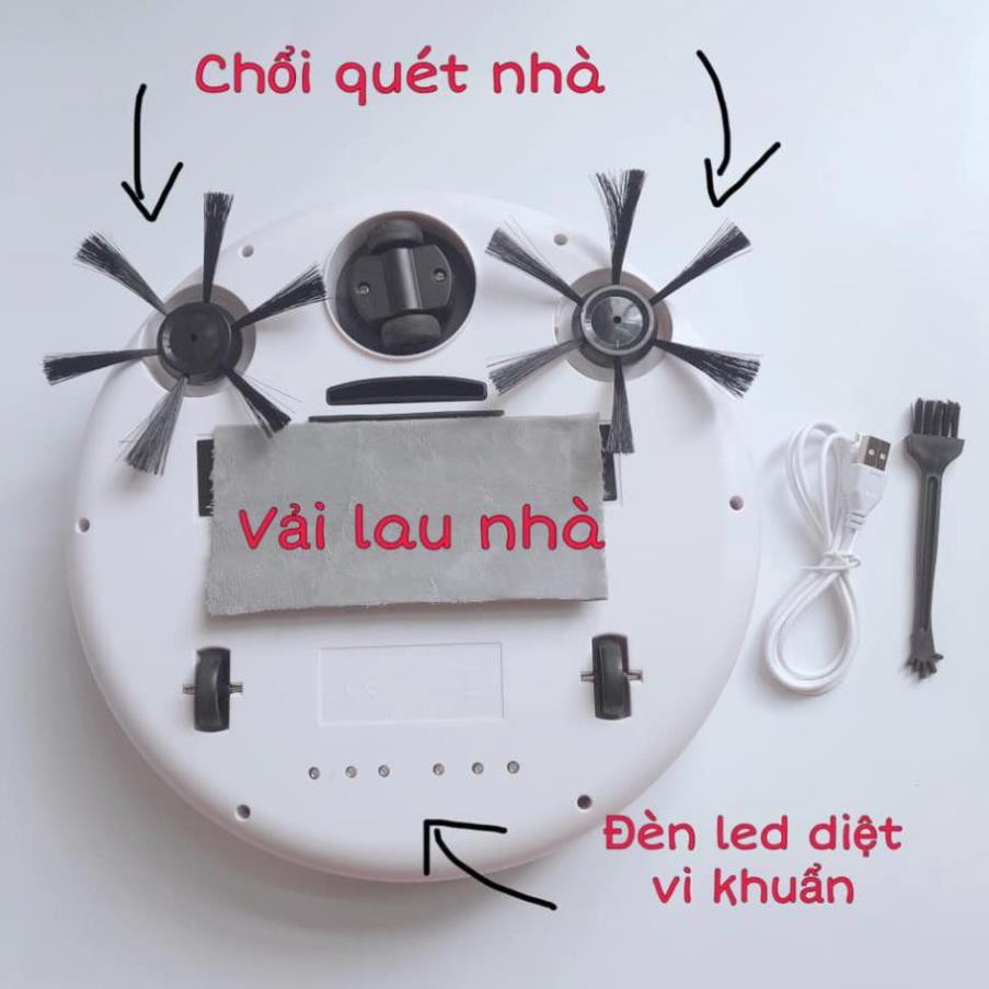 ✔Bộ sản phẩm bao gồm: Robot, 2 đôi chổi cạnh; 1 khăn lau; 1 dây sạc ; 1 hộp lọc bụi , 1 chổi vệ sinh