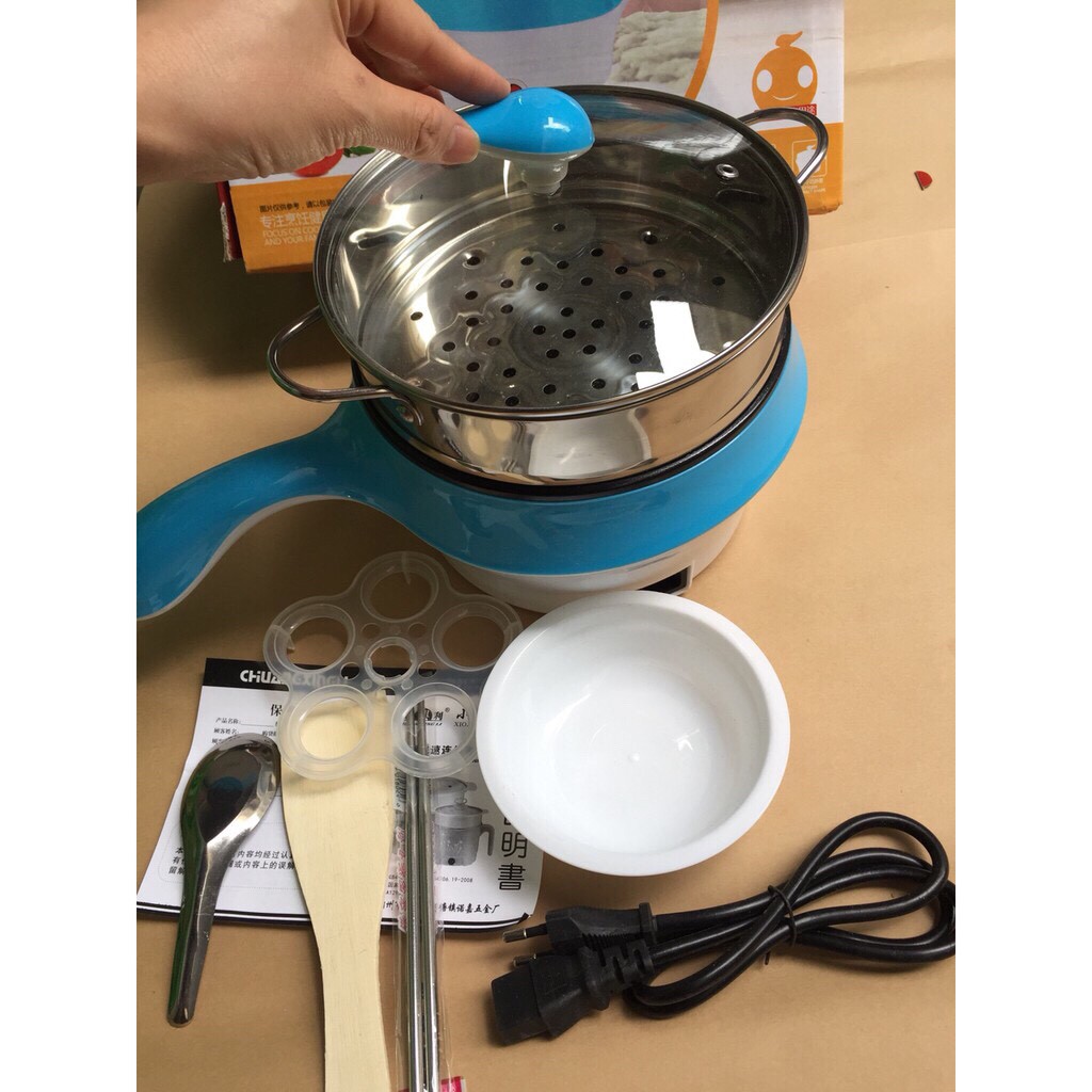 Nồi điện chảo cầm tay đa năng: nấu lẩu, nấu canh, xào rau, nấu mỳ... kiểu dáng gọn nhẹ, dễ dàng đặt trên bàn ăn, không chiếm nhiều diện tích.Thêm xửng hấp Inox tiện dụng giúp bạn chế biến được nhiều món ăn hơn.