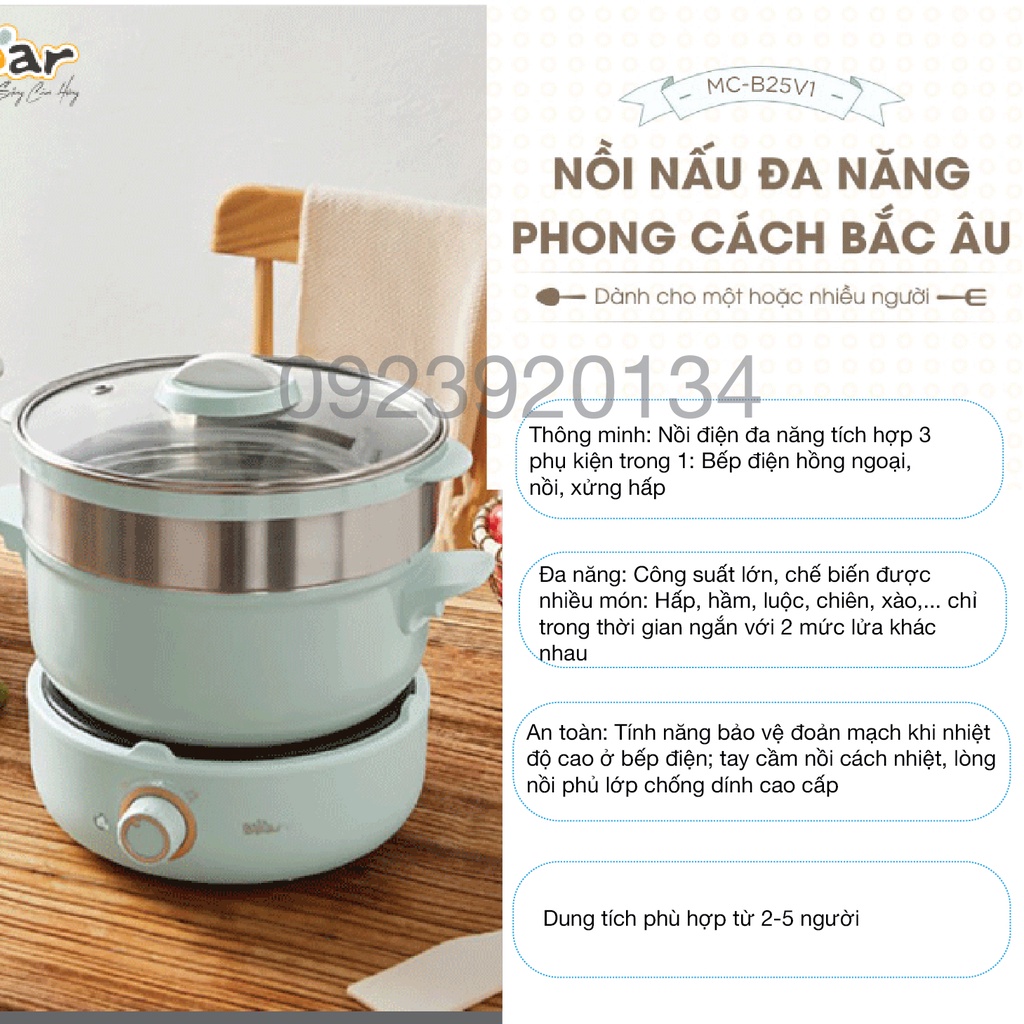 Nồi Điện Đa Năng Bear MC-B25V1 (2.5L) (Kèm Lồng Hấp)✔️Thông minh: Nồi điện đa năng tích hợp 3 phụ kiện trong 1: Bếp điện hồng ngoại, nồi, xửng hấp