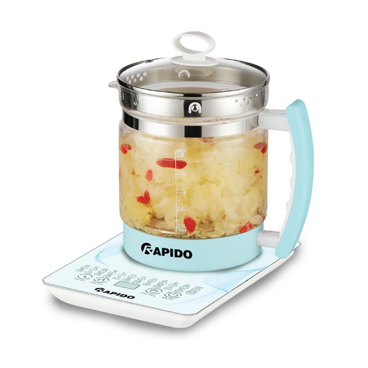 Không đơn thuần là ấm đun nước thông thường, ấm điện đa năng Rapido với 24 chế độ nấu tự động sử dụng dễ dàng, nhanh chóng và tiện lợi. Ngoài chức năng nấu nước ấm điên đa năng Rapido còn là ấm pha trà, cà phê tự động, nồi hầm các món dinh dưỡng yêu cầu thời gian dài như sắc thuốc bắc, hầm cháo, chưng yến ….hay nồi đa năng tiện dụng dành riêng cho dân văn phòng như nấu mì, nấu súp, nấu lẩu, và các món tráng miệng như sữa chua, chè,… hâm đồ ăn nhanh tiện lợi mà không cần tới lò vi sóng, không sợ sóng viba ảnh hưởng tới sức khỏe: hâm sữa, hâm rượu, hâm đồ ăn thừa,…