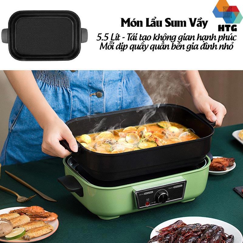 Nồi điện đa năng 6 trong 1 Suncojia LZW-1901, ăn lẩu, nướng, chiên, xào, rán, hấp, làm bánh hàng chính hãng