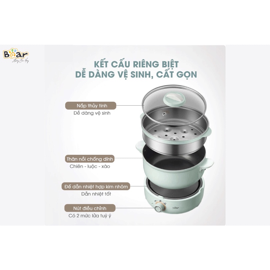 Nồi điện đa năng Bear 2.5 lít MC-B25V1 (kèm lồng hấp) - Bảo Hành Chính Hãng
