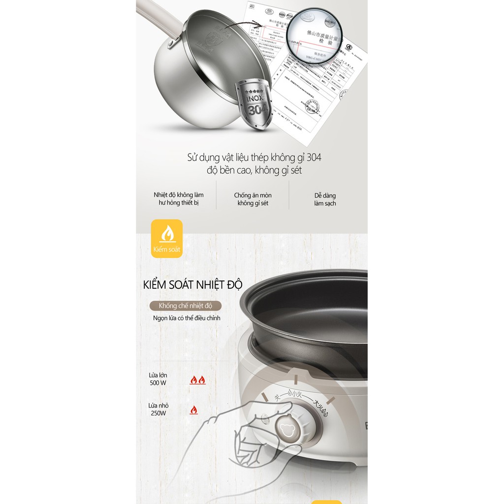 Đa chức năng nấu, chưng, chiên, hấp, hầm canh, nấu lẩu, mì Có thể điều chỉnh nhiệt độ và công suất nấu thích hợp với từng món ăn khác nhau