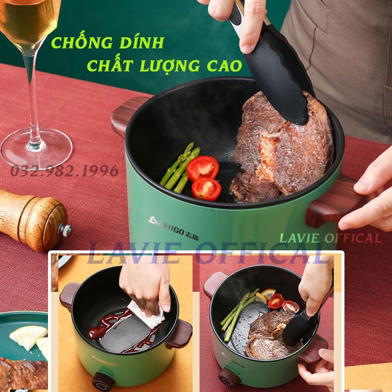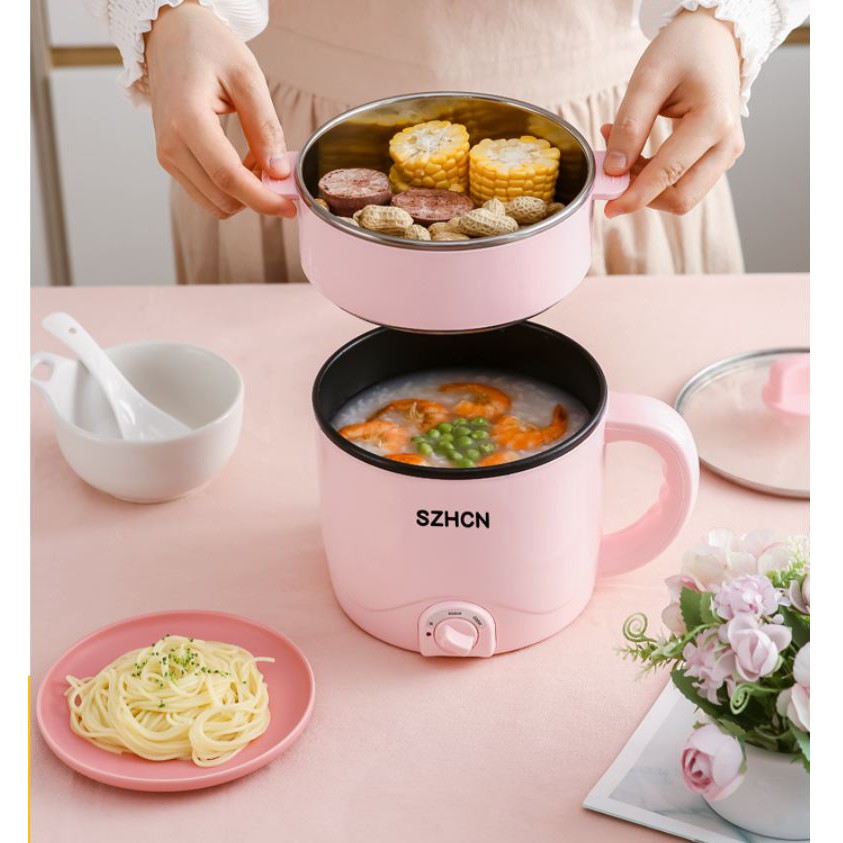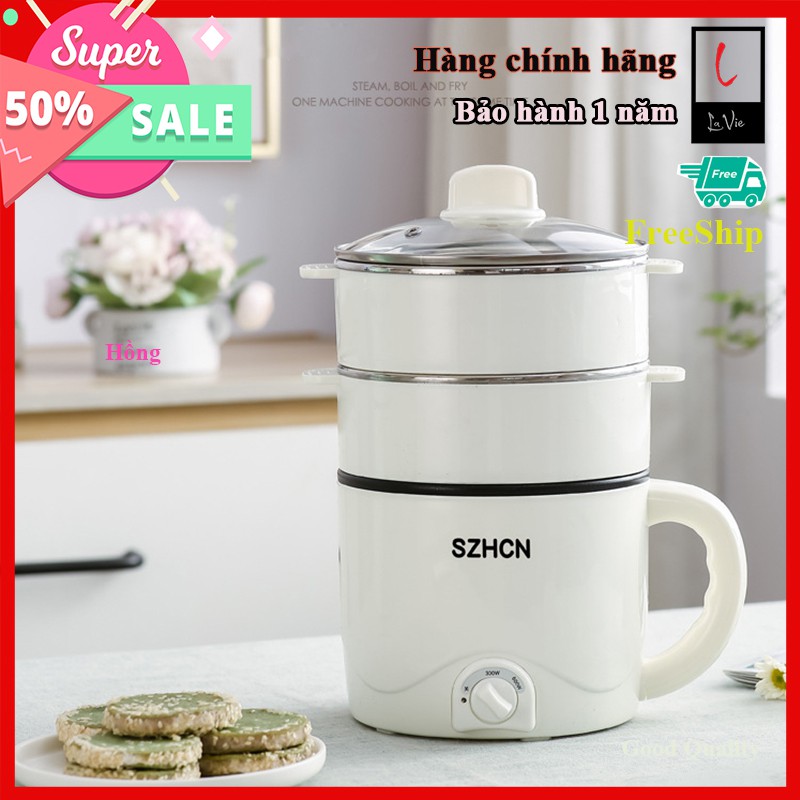 Nồi Điện Đa Năng Cao Cấp Có Tầng Hấp Nồi Lẩu Điện Mini Chống Dính 3 Trong 1 Nấu Mì, Lẩu Mini, Nấu Cháo, Hầm Canh,...