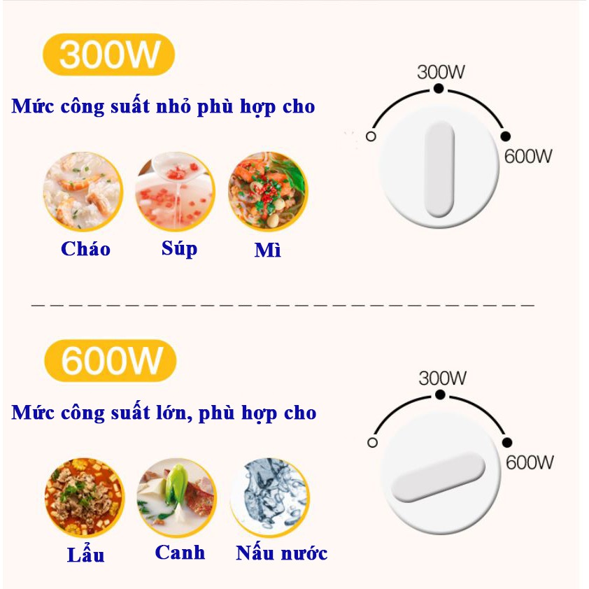 ✔️ 2 mức công suất khác biệt 300w và 600w.