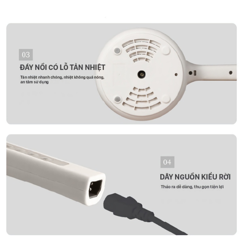 ✔ Dây nguồn dạng kiểu rời tháo lắp thật đơn giản, thu gọn tiện lợi dễ dàng mang đi cất giữ và chùi rửa vệ sinh.