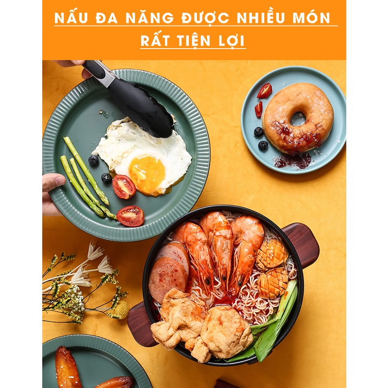 Nồi Điện Đa Năng Chống Dính Cao Cấp 2L Nấu Mì, Lẩu, Xào Tiện Lợi 600W (Tặng ổ 3 chân sang 2 chân)