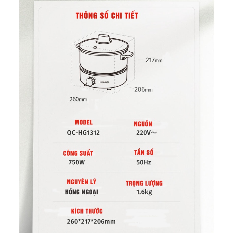 Thiết Bị Điện Gia Dụng > Đồ gia dụng nhà bếp > Nồi nấu đa năng || Nồi điện đa năng chống dính HUYNDAI 2.5L lẩu, chiên, xào...(tặng kèm ổ cắm 3 chấu)Còn hàng