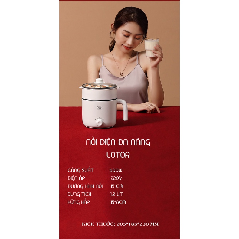 [Mã 254ELSALE giảm 7% đơn 300K] Nồi điện đa năng chống dính Lotor 1.2L lẩu, chiên, xào...(tặng kèm ổ cắm 3 chấu)