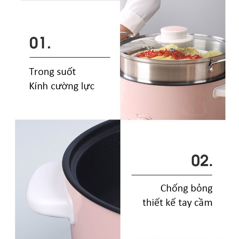 Nồi điện đa năng chống dính Lotor 30C Nồi lẩu điện 3 Lít Nấu cơm, chiên, xào, hấp, hầm