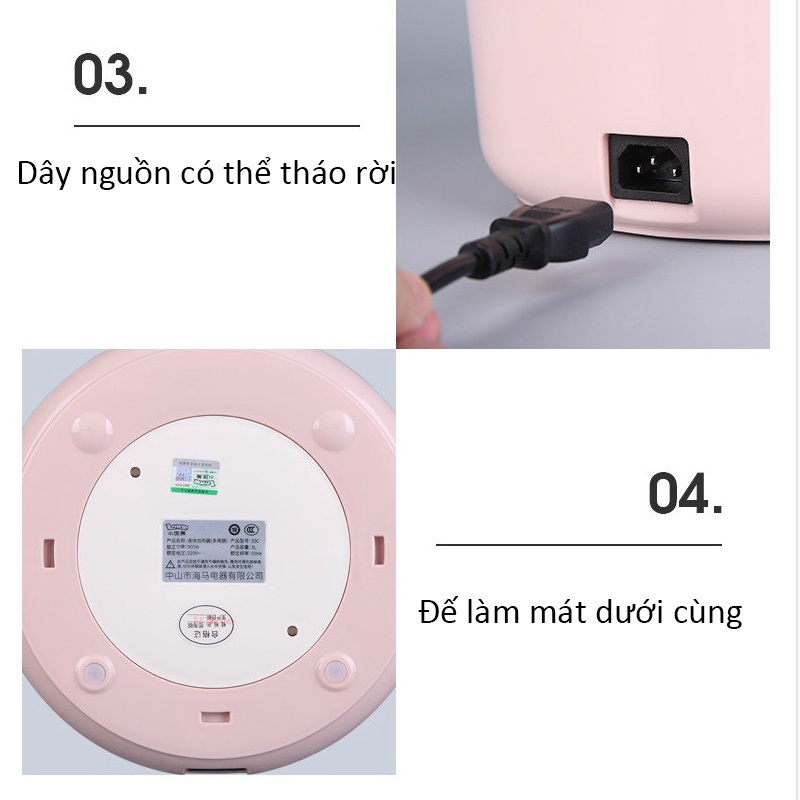 • Mức nhiệt thấp 500W khỏi sợ sự cố chập điện thích hợp dùng để rán bánh, chiên trứng, nấu mì.