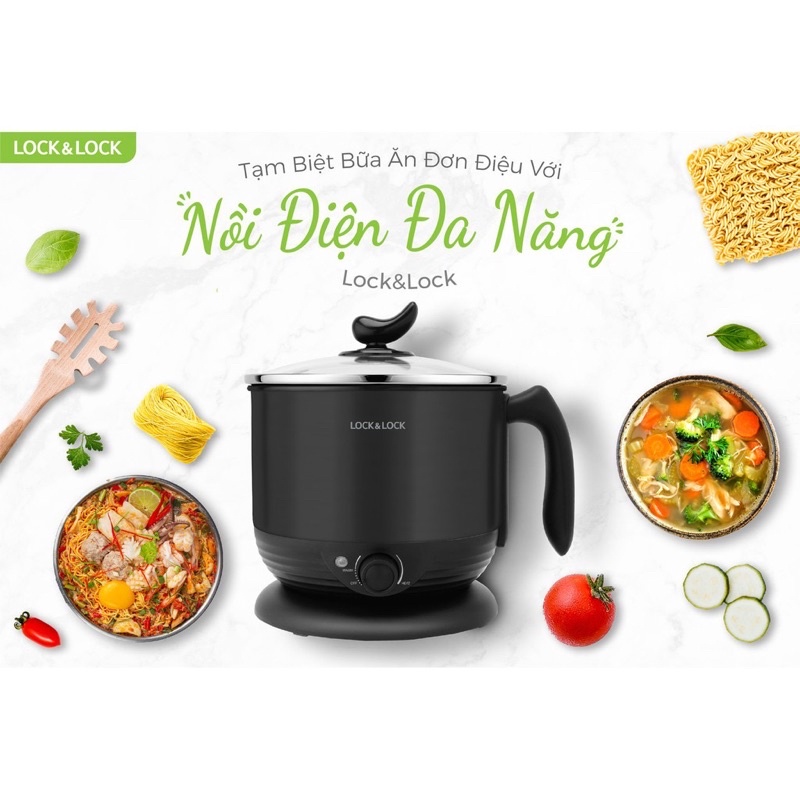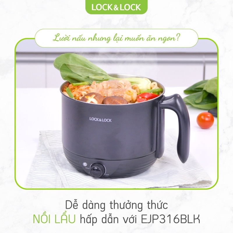 [Mã 44ELSALE2 giảm 7% đơn 300K] NỒI ĐIỆN ĐA NĂNG, CỐC NẤU MÌ, NỒI LẨU MINI LOCK&LOCK 1.2L EJP316BLK