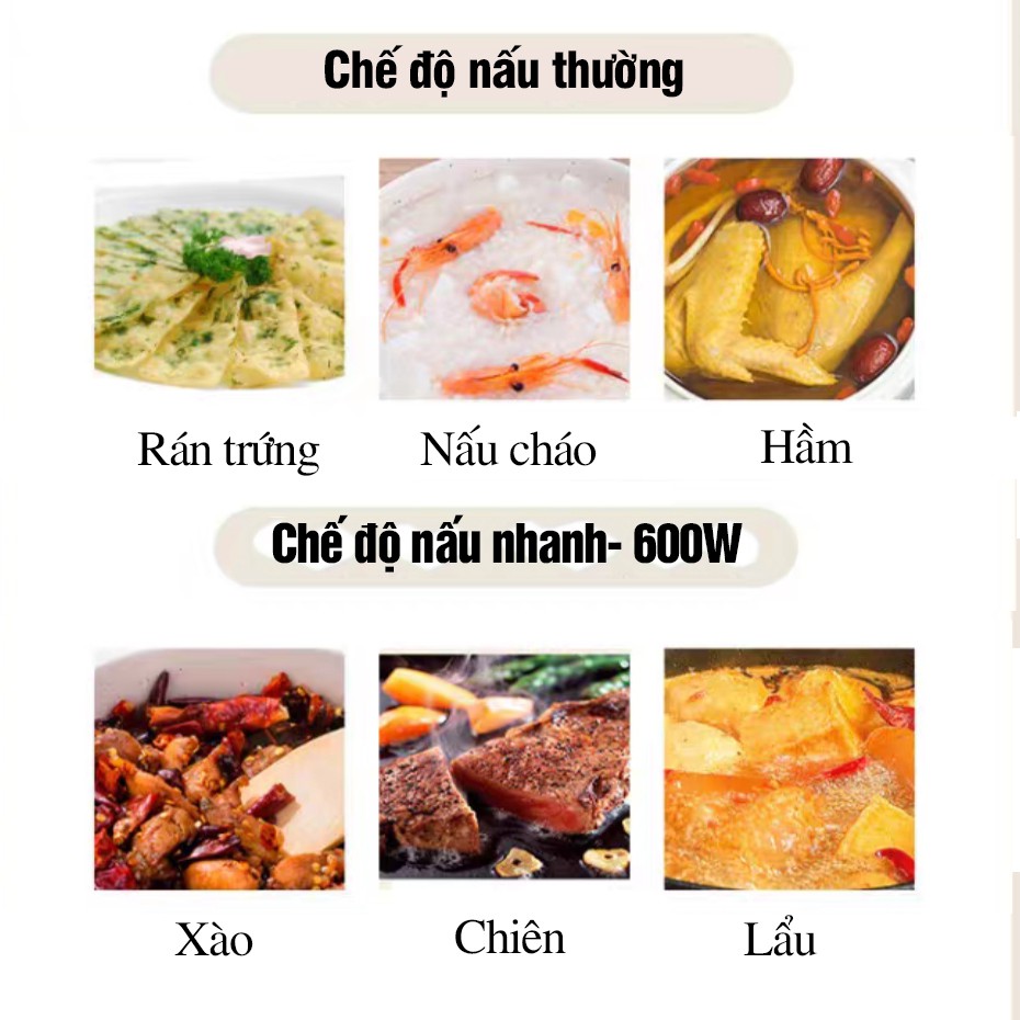Công suất mạnh 600W với 2 CHẾ ĐỘ NẤU