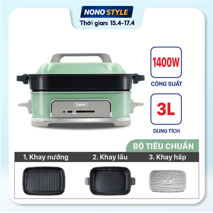 Nồi điện đa năng Gevi 3L - Nồi nướng, nhúng lẩu, hấp thức ăn - Kèm khay tiện lợi, chất lượng - BH 12 THÁNG☑️ Thông Số Sản Phẩm