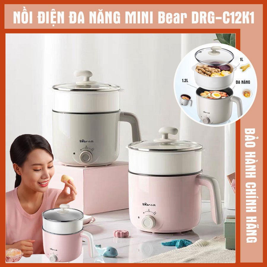 Giới thiệu Nồi điện đa năng hầm cháo, nấu mỳ, nồi lẩu mini đa năng BEAR DRG-C12K1, công suất 600W - BẢO HÀNH CHÍNH HÃNG