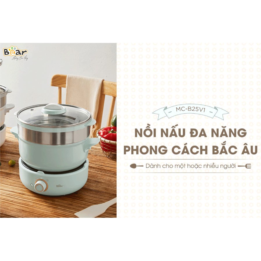 - Nồi điện đa năng kèm bếp Bear DHG-B25Z1 (MC-B25V1) là món đồ gia dụng không thể thiếu trong mọi căn bếp. Sản phẩm có thiết kế thông minh tích hợp bếp điện, nồi đa năng kèm nồng hấp giúp bạn chế biến nhiều món ăn như: Nấu lẩu, nấu canh, món luộc, món hấm, chiên, rán,... thay thế được nhiều dụng cụ nhà bếp khác nhau. Cùng trải nghiệm ngay tại Bear Việt Nam nhé!
