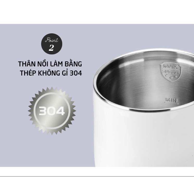 - Thân nồi làm bằng thép không gỉ, an toàn và dễ làm sạch