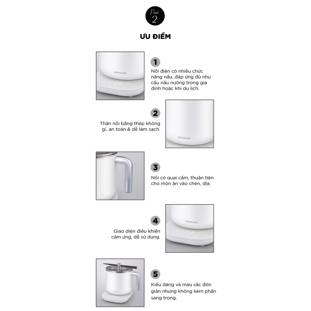 EJC141 - Nồi điện đa năng Lock&Lock, 220-240V~, 50-60Hz, 600-700W - màu trắngChất liệu: