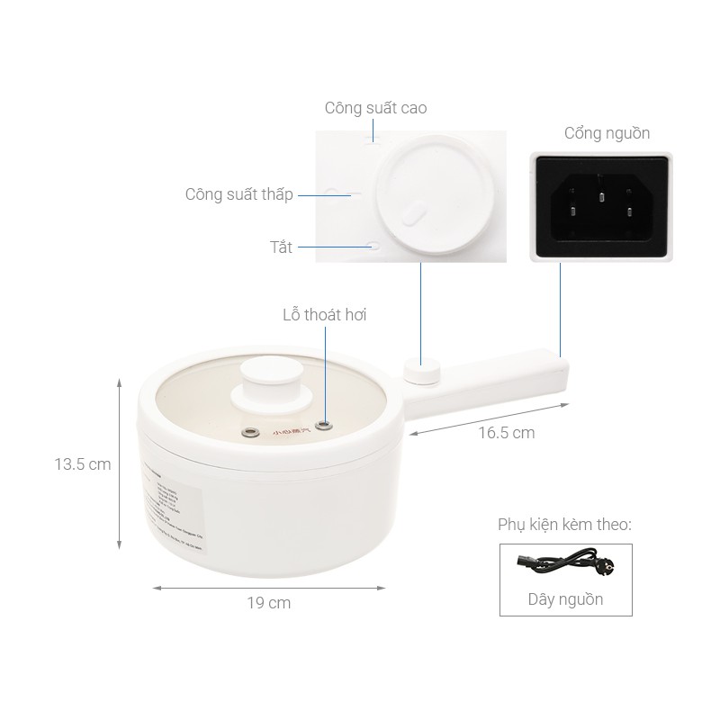 Nồi nấu Mishio MK271 có thiết kế vô cùng nhỏ gọn với kích thước các chiều (D x R x C) lần lượt là 37cm x 20.2cm x 13.6cm. Nồi có cấu tạo gồm phần thân nồi và cán cầm đồng thời là nguồn cung cấp điện, núm xoay điều khiển nhiệt độ, chế độ. Khi đun sôi xong bạn có thể tháo rời dây điện ra bảo quản và vệ sinh gọn gàng.