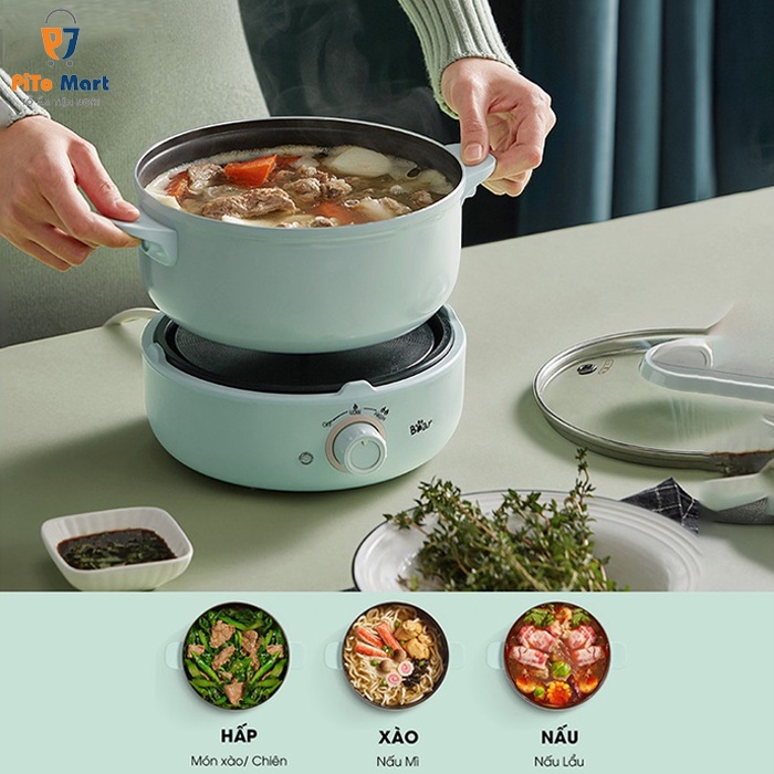 - Nồi điện đa năng mini Bear có thể chế biến nhiều món ngon khác nhau: chiên, lẩu, xào, luộc, hấp,...