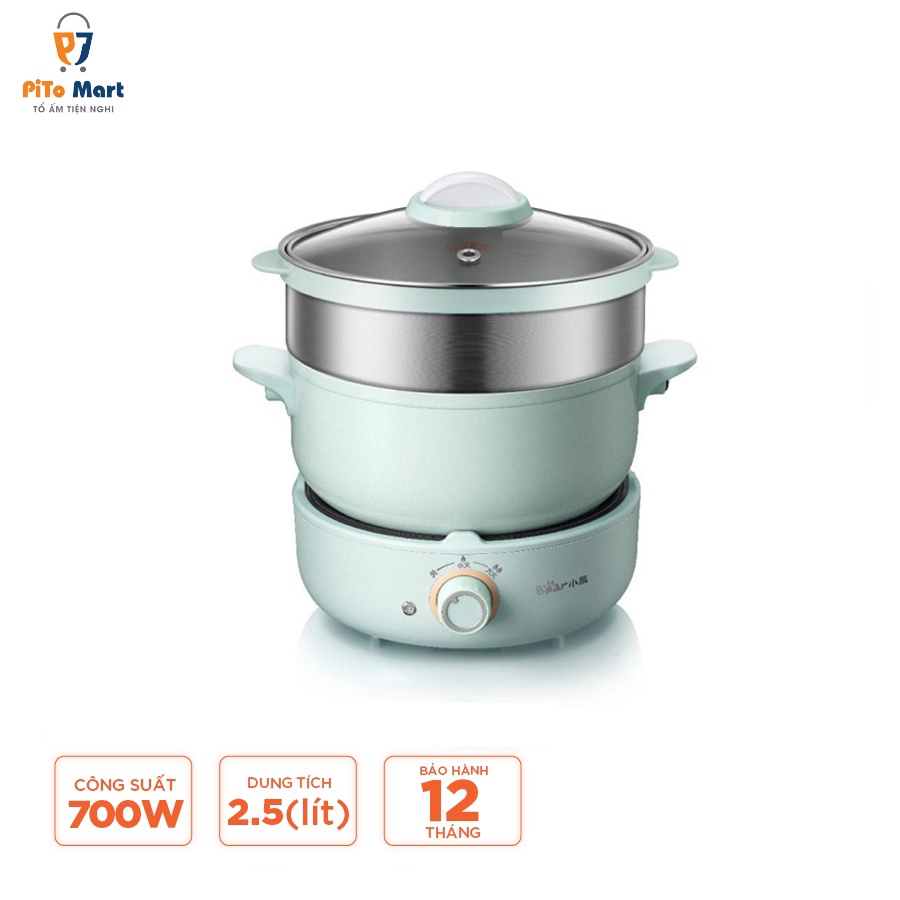 Nồi điện đa năng mini Bear MC-B25V1 kèm lồng hấp 3 tầng nấu, lẩu, hầm màu xanh nhạt 2.5L tiện lợi bảo hành 18 tháng