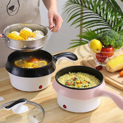 Nồi điện đa năng mini nấu lẩu, hấp, chiên kèm xửng 2 tầng có tay cầm 18cm