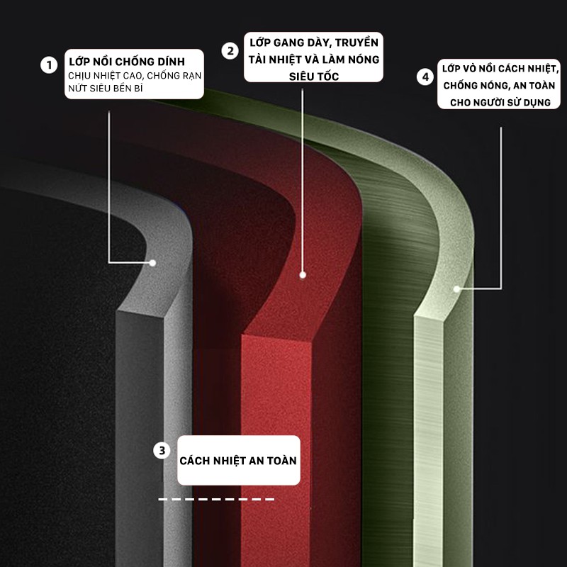Lớp vỏ nồi cách nhiệt, chống nóng an toàn trong quá trình sử dụng sản phẩm để nấu nướng.