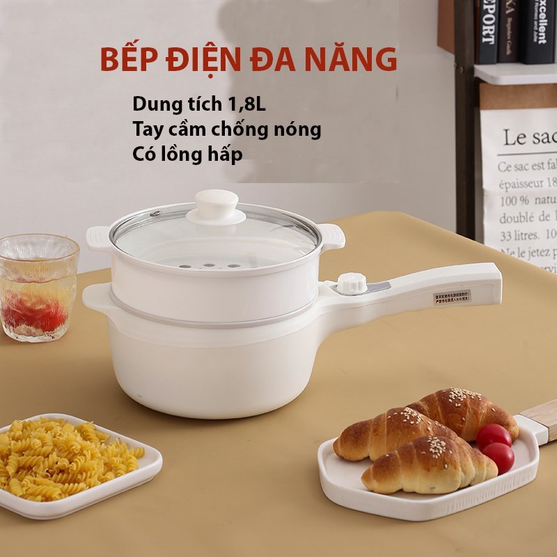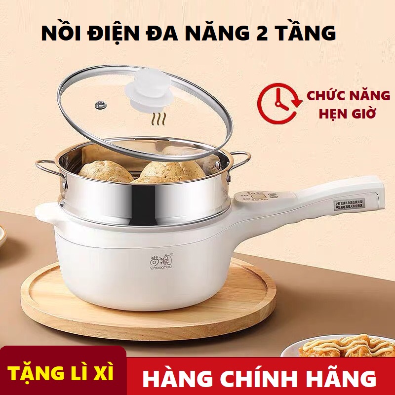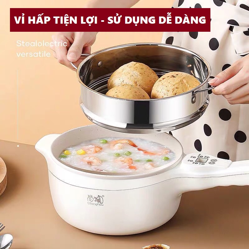 Nồi điện đa năng SHANGHOU mini chống dính có tay cầm - Bếp điện 2 tầng dùng để nấu, hấp, chiên, xào - Công suất 600W
