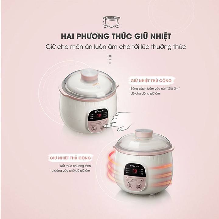 Sản phẩm với các chức năng tiện dụng như nấu cháo, hầm thực phẩm, hâm giữ nóng đồ ăn.