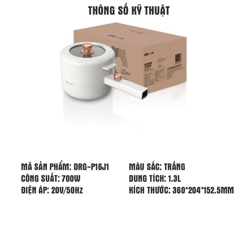 Nồi điện hầm cháo, nấu mỳ, nồi lẩu mini đa năng BEAR DRG-C12K1, công suất 600W - BH chính hãng 6 tháng