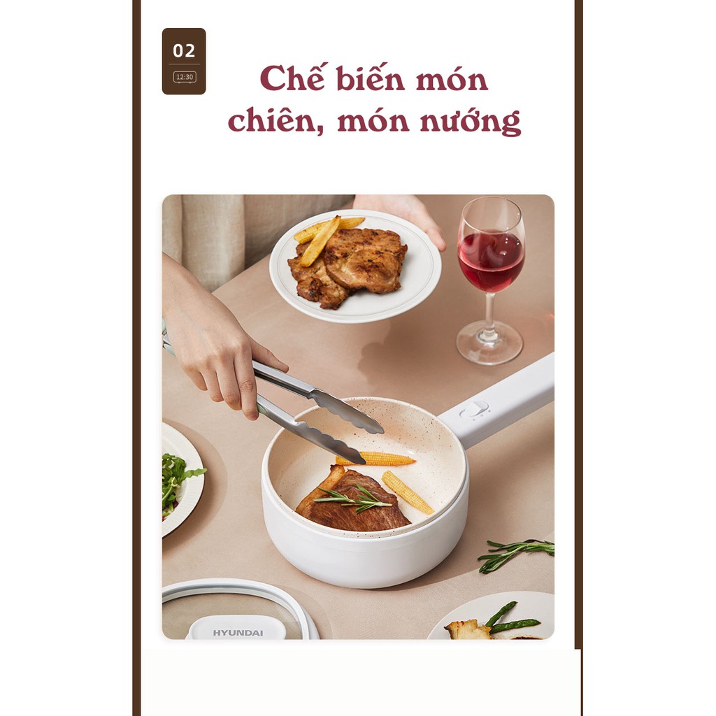 Nồi điện Hàn Quốc thương hiệu Huyndai gốm ceramic nấu ăn đa năng dung tích 1.5L bộ 5 m