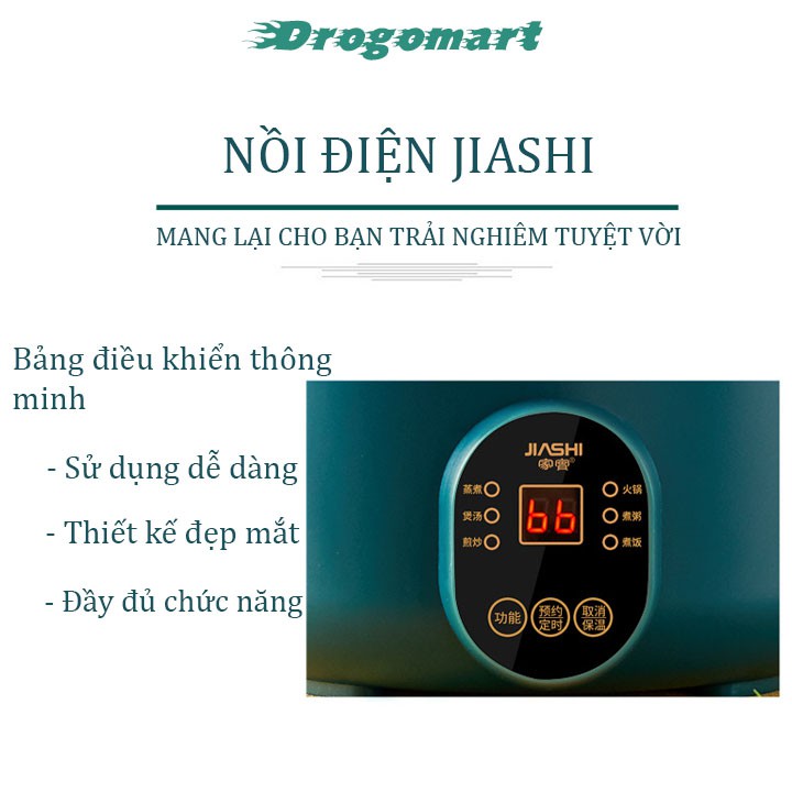 Nồi Điện JIASHI Đa Năng Hấp Nấu, Chiên Xào 2L, 3L, Phủ Lớp Chống Dính, Thân Nồi Cách Nhiệt Chống Bỏng
