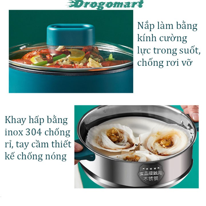 ✔️ Nồi lẩu điện mini có vỉ hấp. Có hai lớp, lớp trong chống dính, lớp ngoài là nhựa chống nóng.