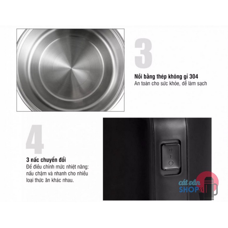 - 3 nấc chuyển đổi. Để điều chỉnh mức nhiệt năng: nấu chậm và nhanh cho nhiều loại thức ăn khác nhau.