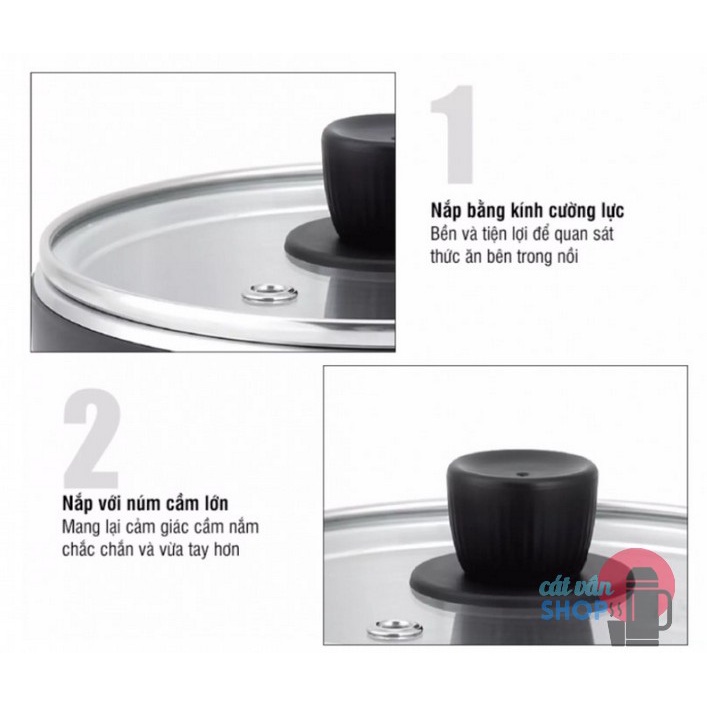 - Nắp bằng kính cường lực. Bền và tiện lợi để quan sát thức ăn bên trong nồi.