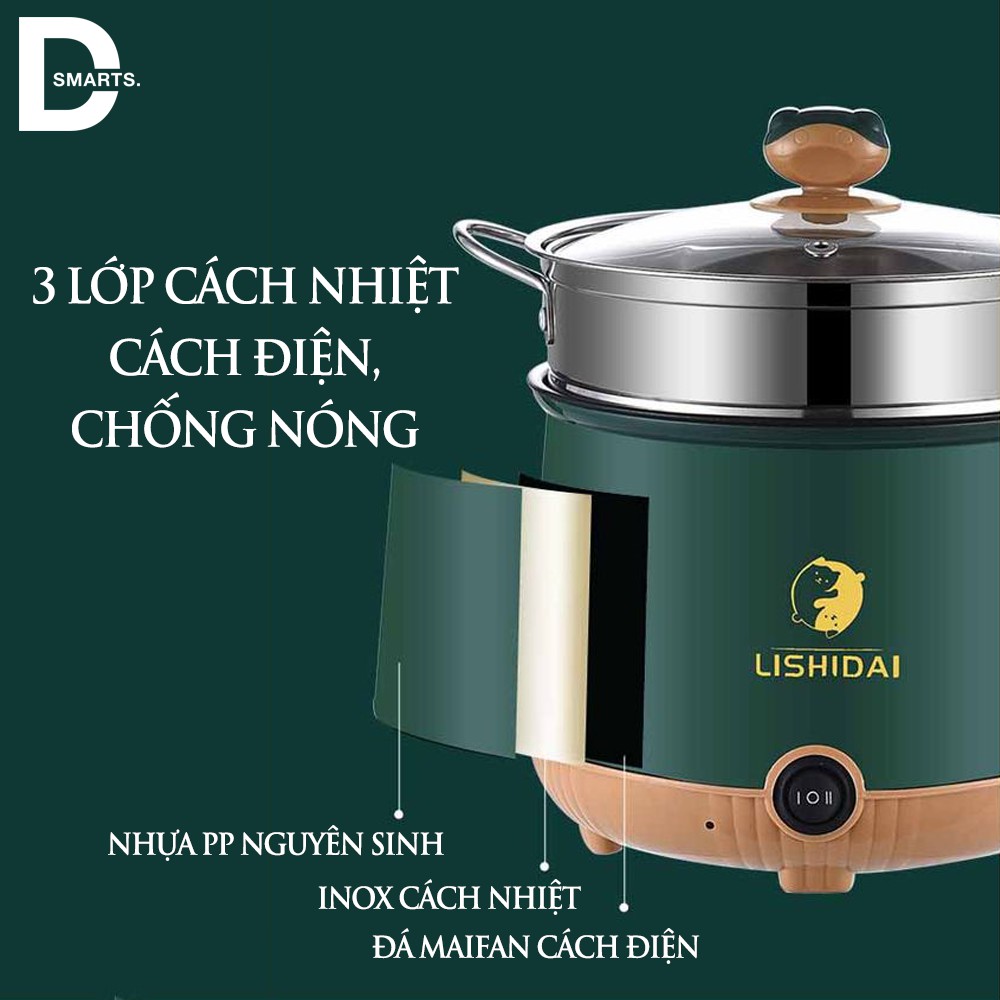 Nồi Điện Mini 2 Tầng Đa Năng Tặng Kèm Khay Hấp ( Chiên, Xào, Nấu ăn, nấu cơm, nấu lẩu mini ) cho 1-2 người-------------------------------------