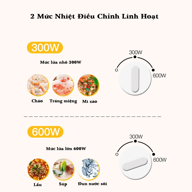 ✔️ 2 mức công suất khác biệt 300w và 600w.