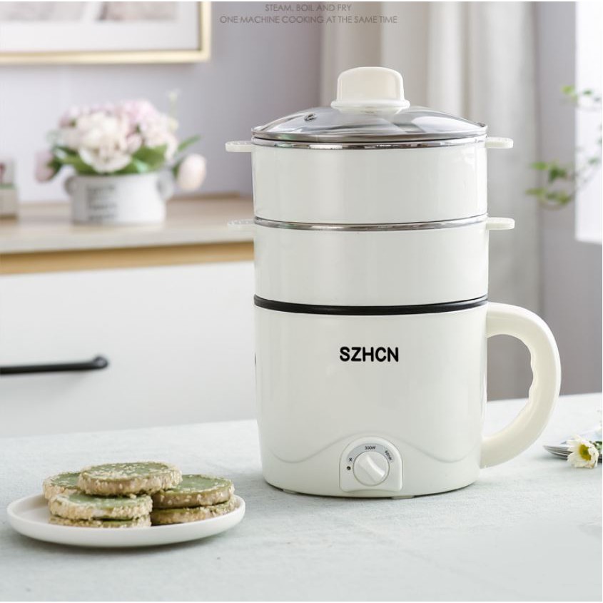 Nồi Điện Mini Đa Năng 3 Tầng Cao Cấp Chống Dính Tuyệt Đối An Toàn Có Lồng Hấp| Nồi Lẩu Mini Gia Đình Chất Lượng Cao