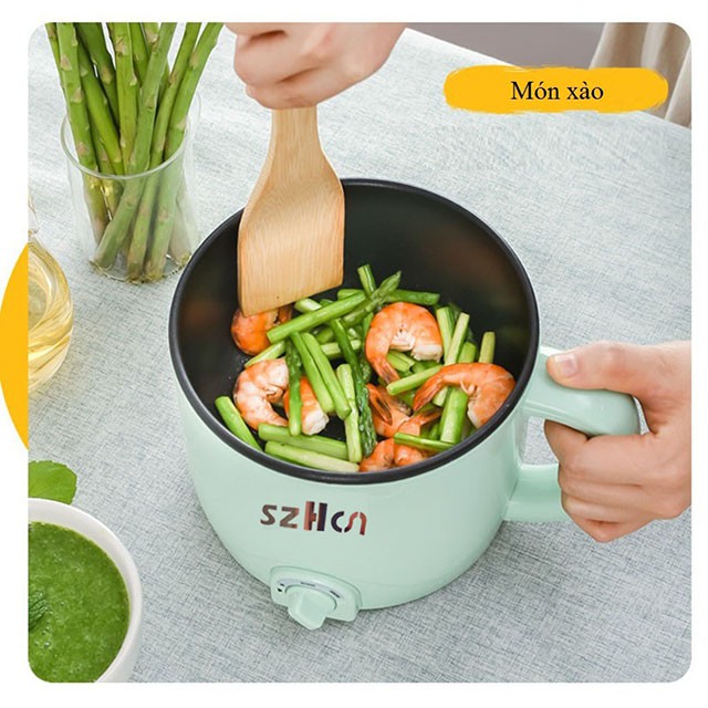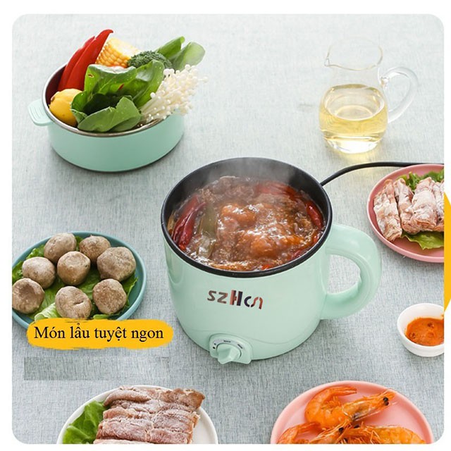 Nồi lẩu điện mini đa năng chống dính 2 tầng 2 nấc nhiệt SZHCN nhỏ gọn tiện lợi dùng ăn lẩu mì chiên xào luộc hấp