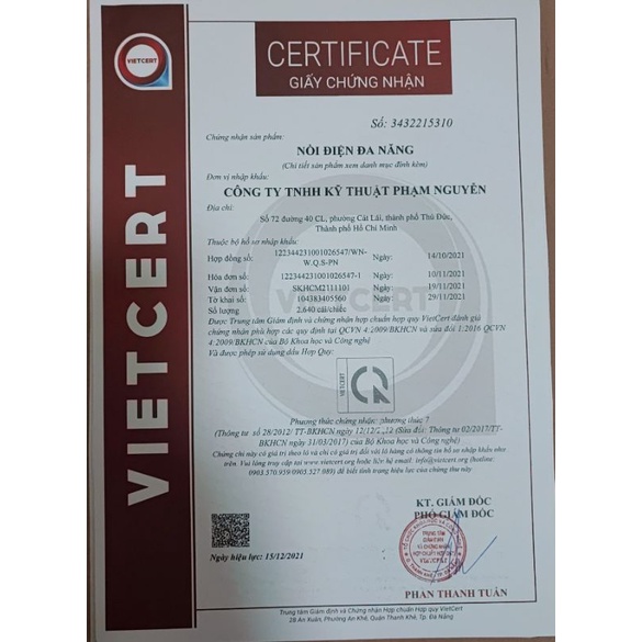 ✔️ Nguồn điện sử dụng: 220V – 50Hz