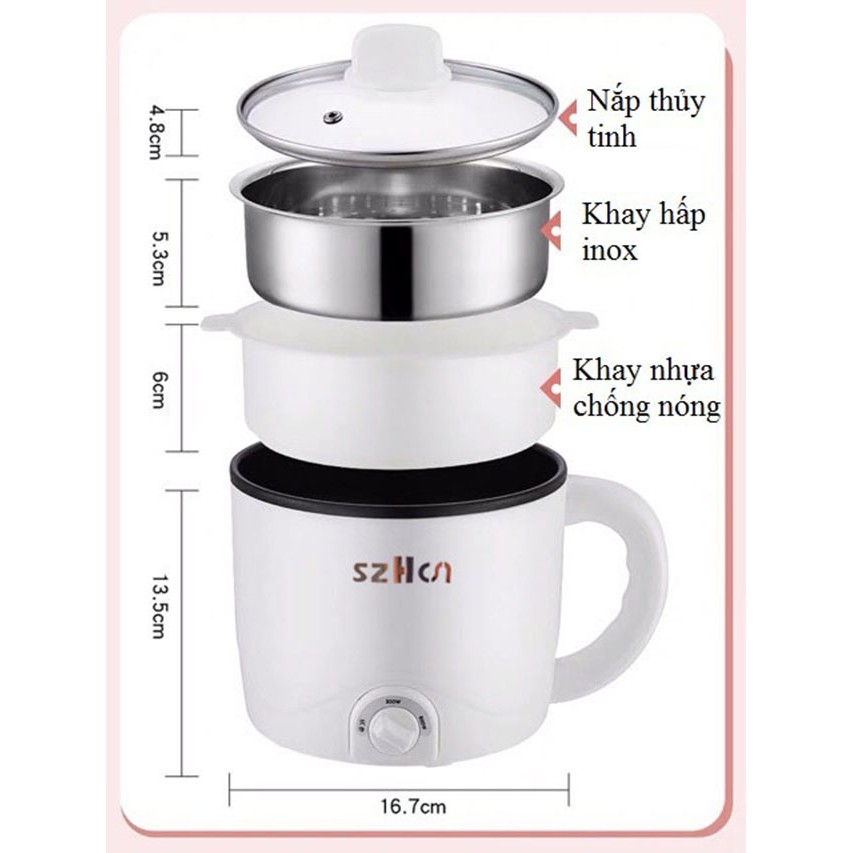 Nồi điện mini đa năng chống dính 2 tầng 2 nấc nhiệt SZHCN dùng ăn lẩu, nấu mì chiên xào luộc hấp nhỏ ngọn tiện dụng