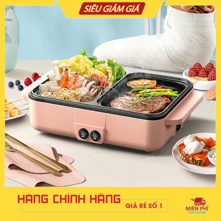 Nồi lẩu nướng điện mini 2 ngăn Chống Dính Đa Chức Năng mẫu mới nhất hiện nay