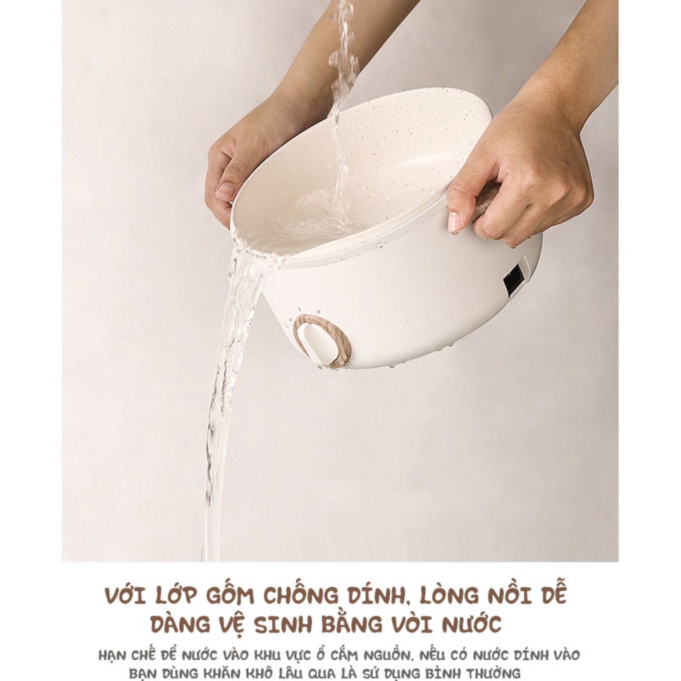 🍀 CHẤT LIỆU:Lòng nồi phủ gốm Ceramic, vỏ PP chịu nhiệt, quai cầm gỗ chống bỏng