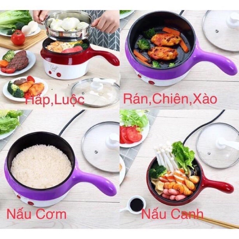 ✅ Ca nấu mì, Nồi lẩu điện mini có vỉ hấp .