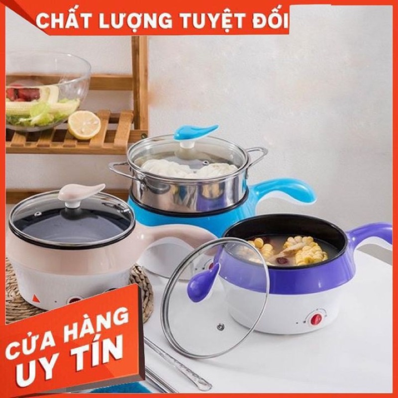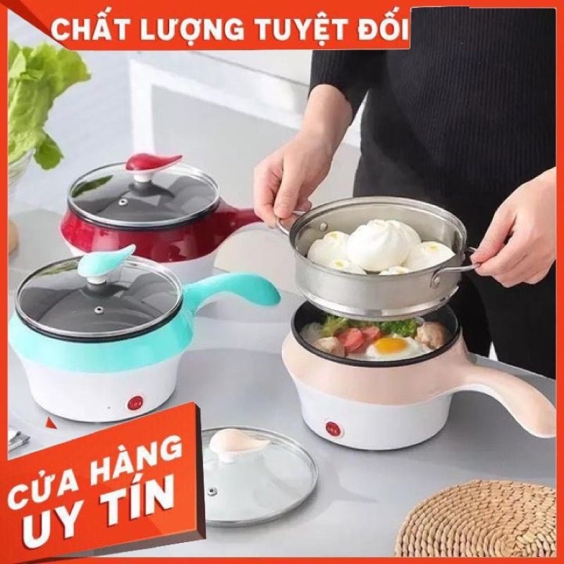 Nồi Điện Mini Hai Tầng Đa Năng có thể Chiên Xào, Hấp Luộc, Nấu Cơm, Nấu Lẩu Mini (Tặng Kèm Khay Hấp)