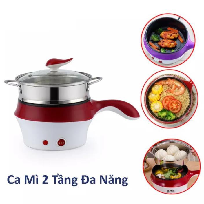 Nồi Điện Mini,nồi lẩu 2 Tầng Mini Tặng Kèm Vỉ Hấp Đa Năng, Chiên, Hấp, Lẩu, Rán Siêu Tiện Dụng